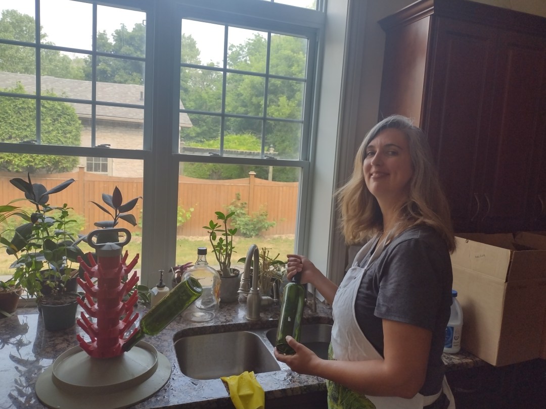Over the weekend I cleaned and disinfected all the bottles in a bleach solution. There were a lot and I did it in two stages.